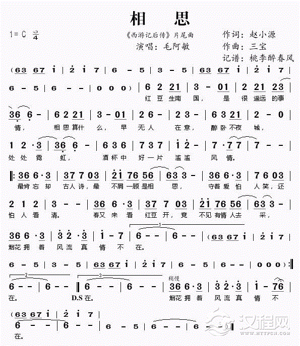 洞箫简谱 相思