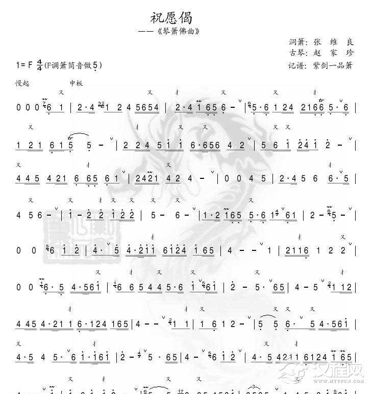 洞箫简谱 祝愿偈