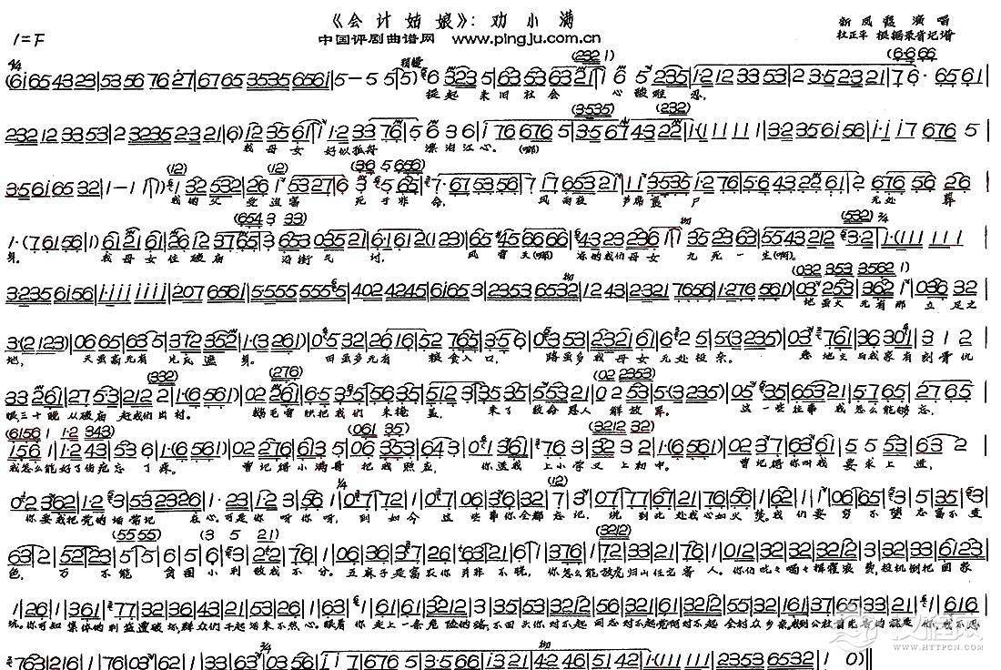 戏曲曲谱天昏地暗雀鸟惊(现代戏《会计姑娘》选段)