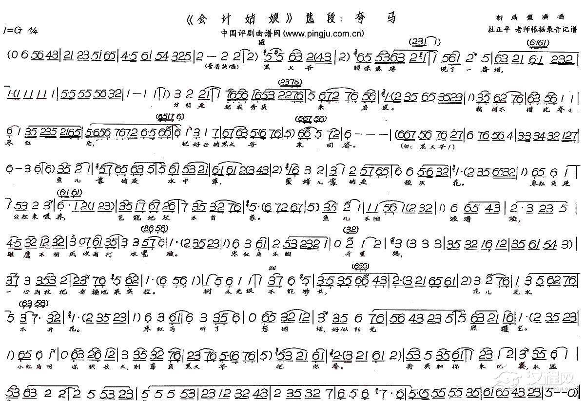 戏曲曲谱好一匹四脚踏雪枣红马(现代戏《会计姑娘》选段)