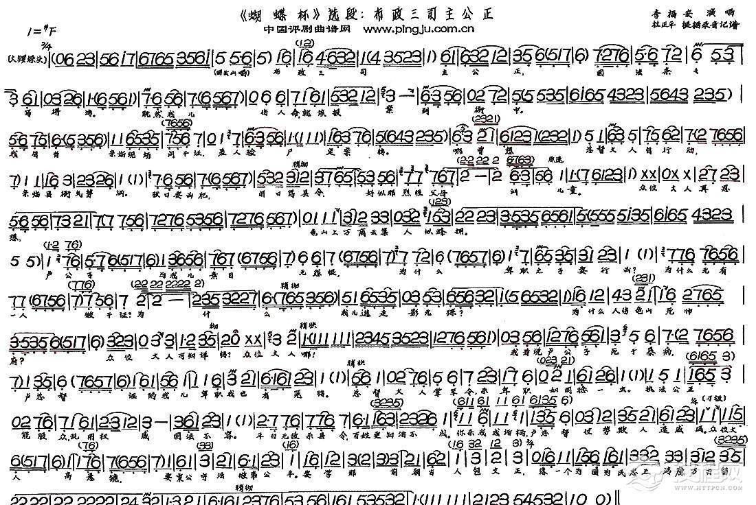 戏曲曲谱忽听得谯楼上一更一点(《蝴蝶杯》选段)