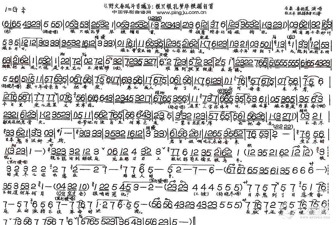 戏曲曲谱牢房内灯光暗阴风惨惨(现代戏《野火春风斗古城》选段)
