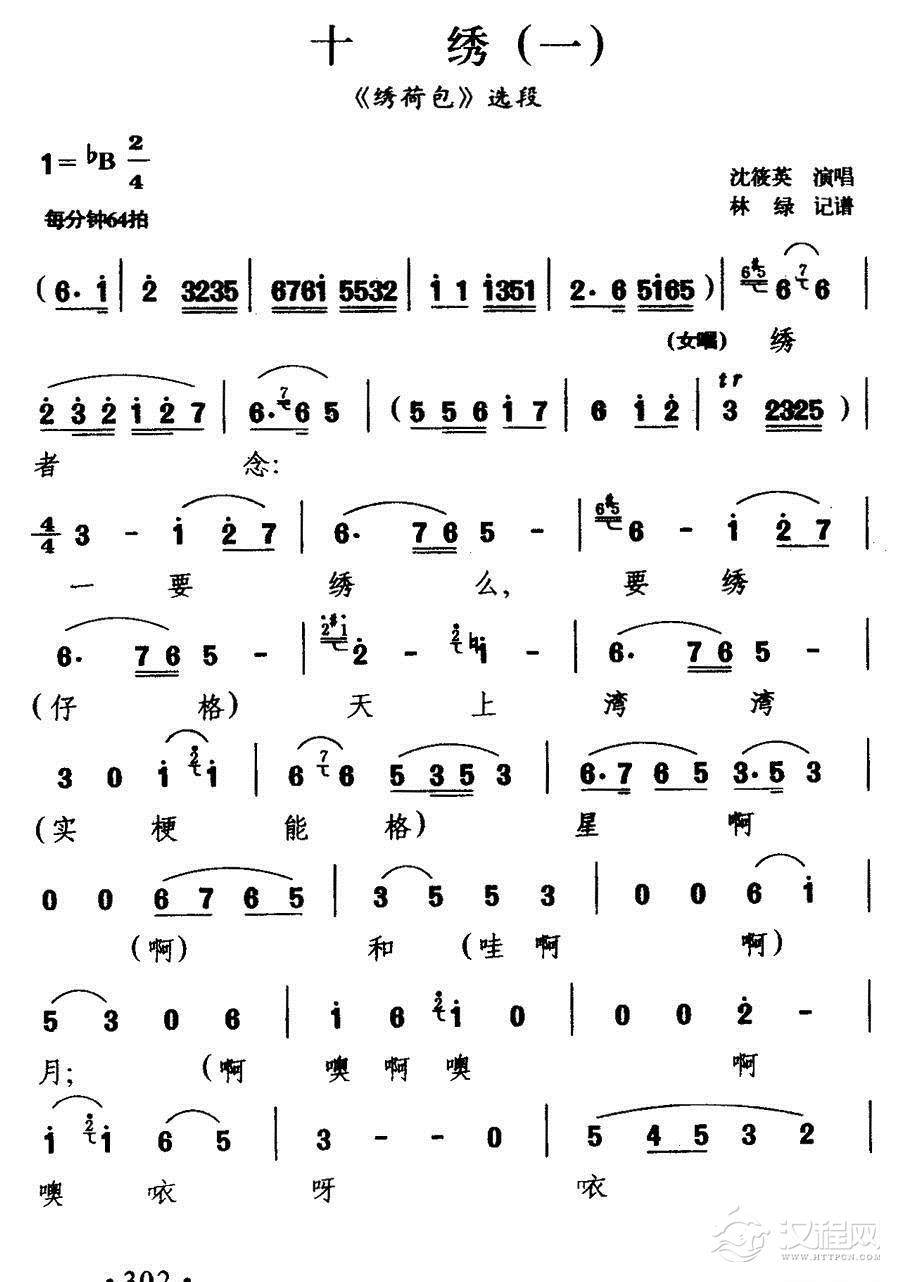 戏曲曲谱[沪剧] 十绣(二)(《绣荷包》选段)