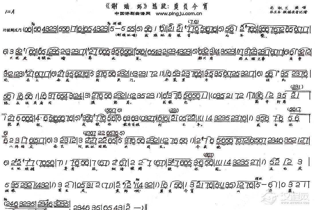 戏曲曲谱摒滴泪咬牙关浑身抖战(《谢瑶环》选段)