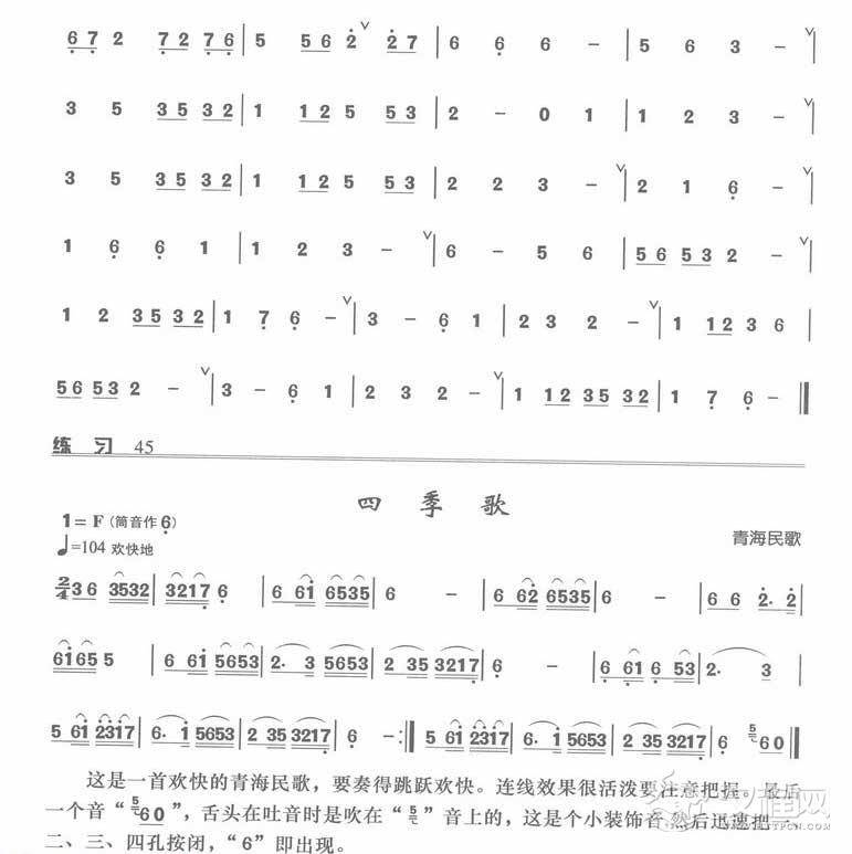 乐器学习箫的几个常用调的练习,筒音作“争”B调的练习