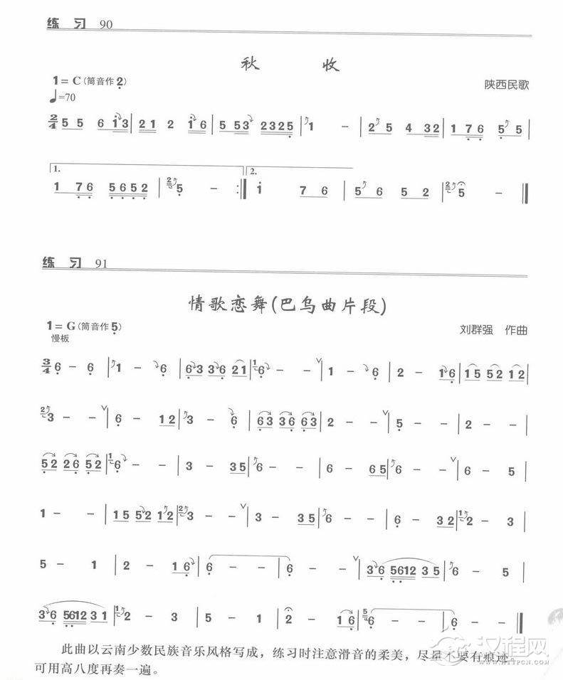 乐器学习箫的几个常用调的练习,筒音作“争”B调的练习
