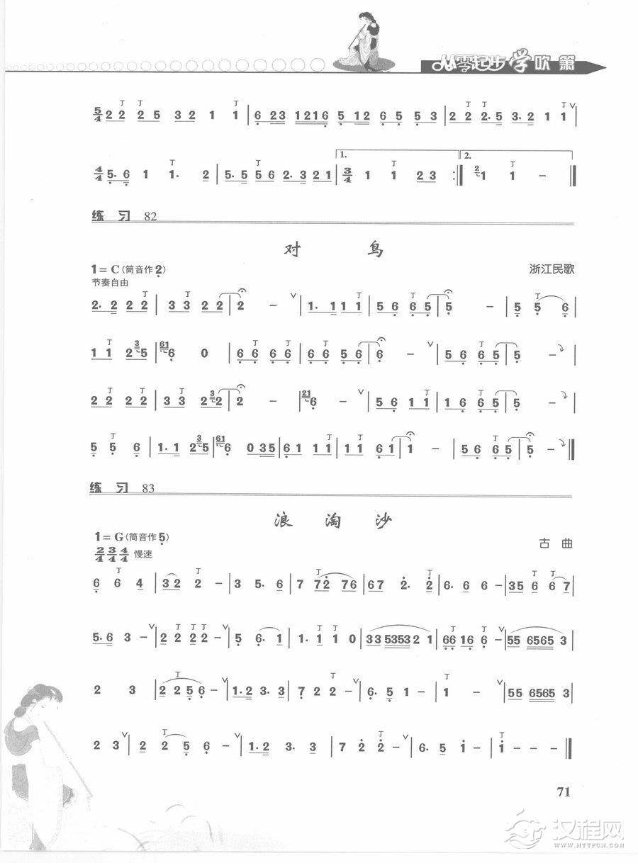 乐器学习箫的几个常用调的练习,筒音作“6”F调的练习