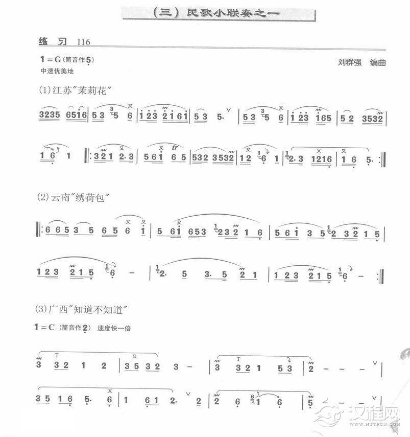 乐器学习箫吹奏技巧的组合练习 民歌小联奏之二