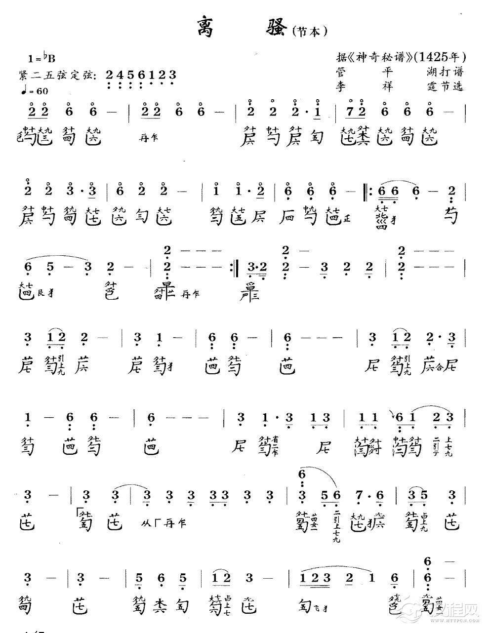 曲谱大全秋塞吟(古琴谱 F调 简谱+减字谱)