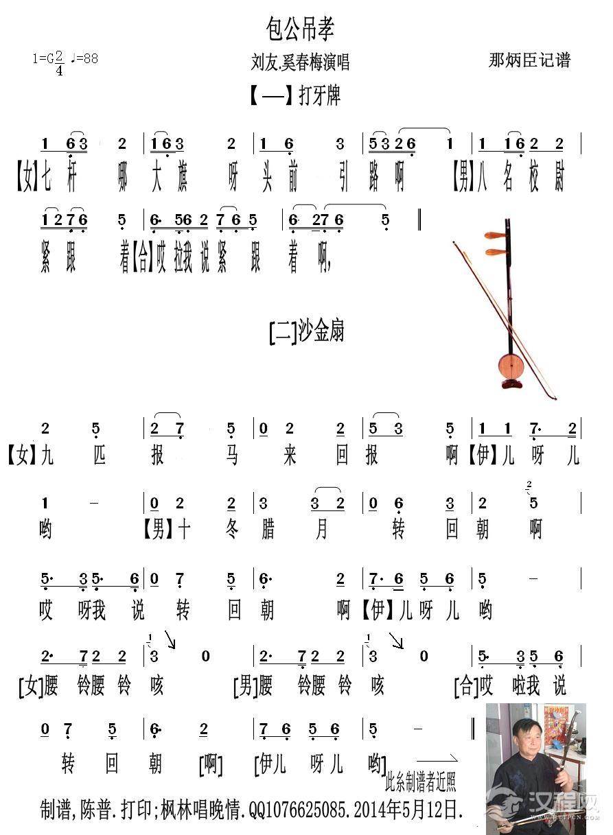 戏曲曲谱拜寿行路(《花为媒》选段)