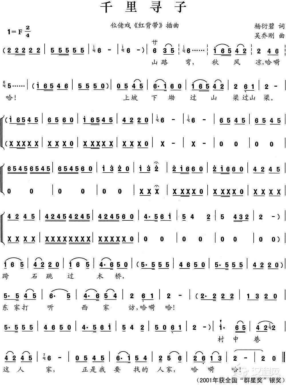 戏曲曲谱天鹅歌(现代戏《米酒歌》选段)