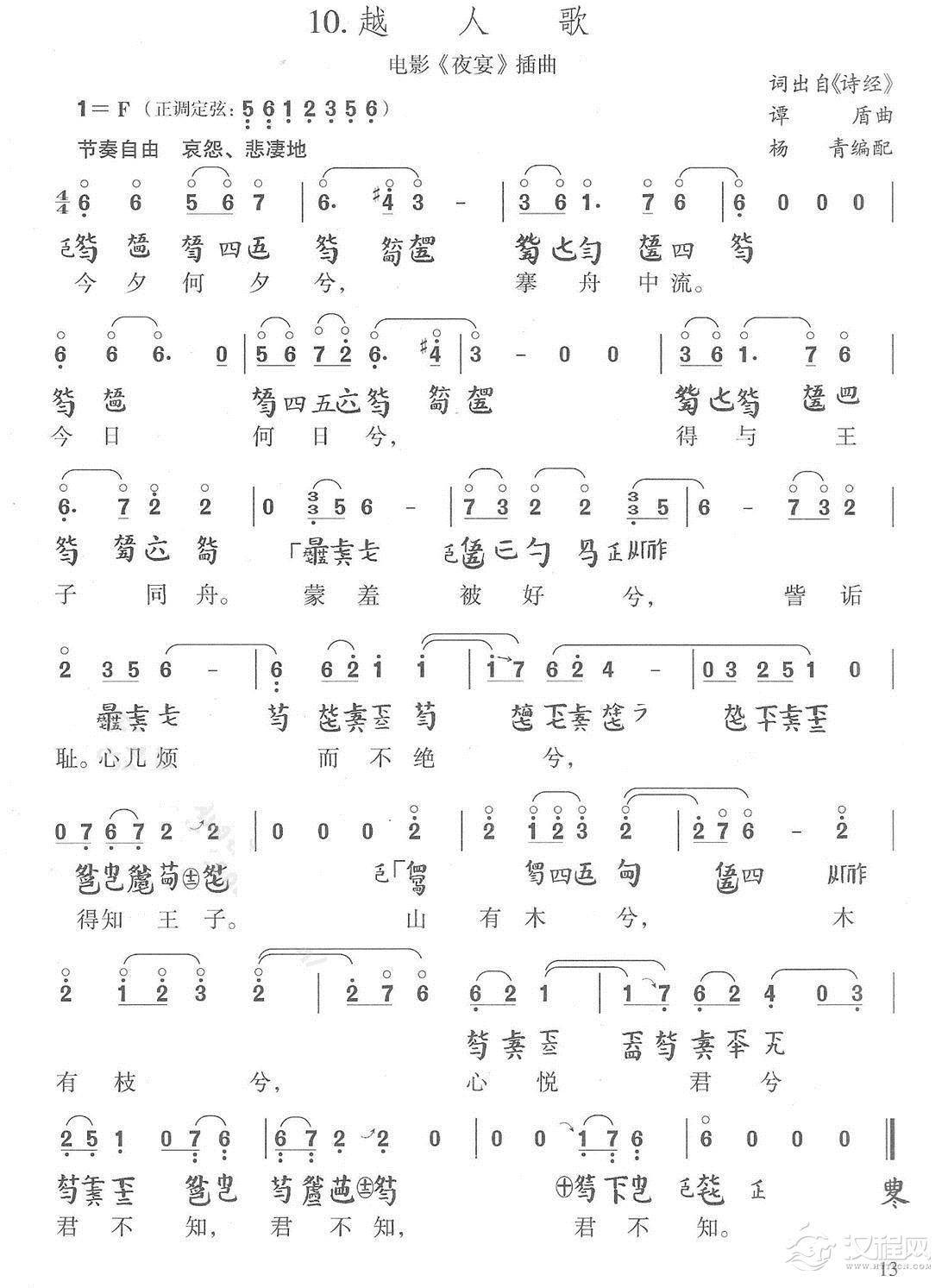 曲谱大全捣衣(古琴谱 降B调 简谱+减字谱 龙琴舫演奏谱)