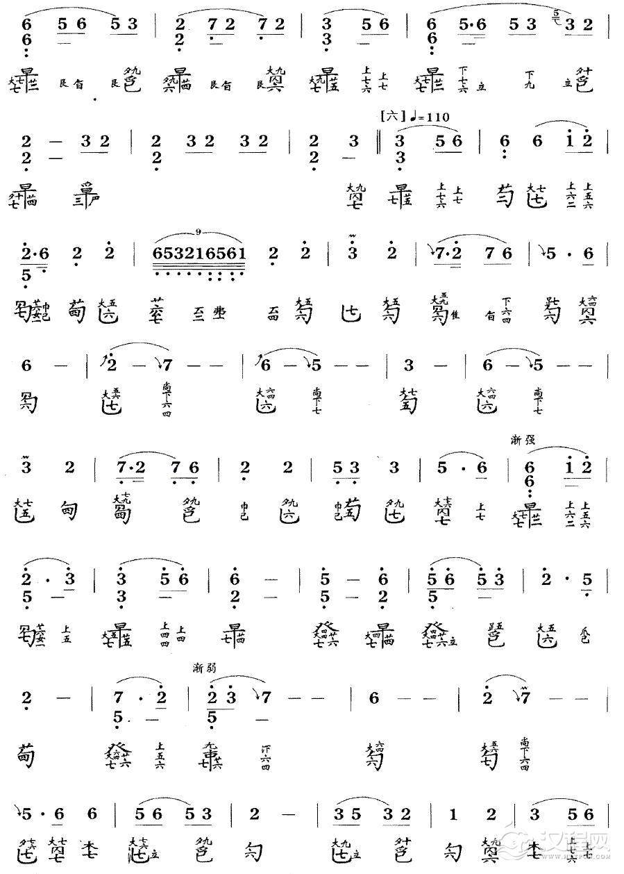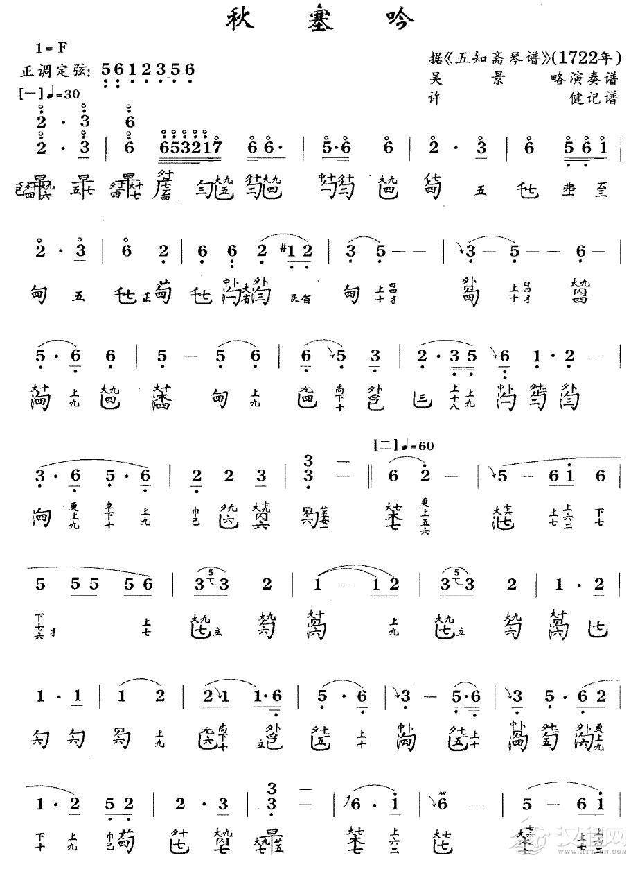 曲谱大全越人歌(电影《夜宴》插曲)(古琴谱 减字谱)