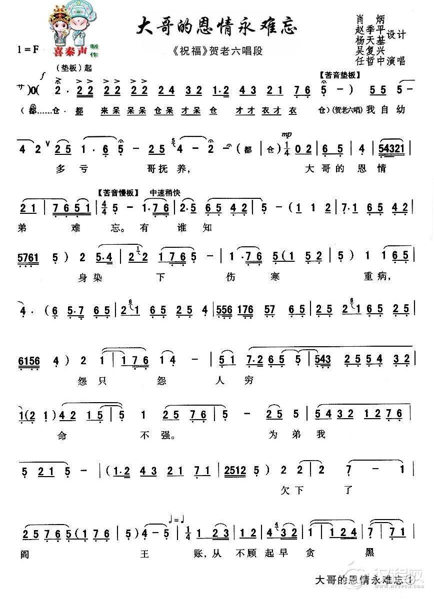 戏曲曲谱[秦腔]再苦再累也心甘(秦腔现代艺术片《祝福》主要唱段)