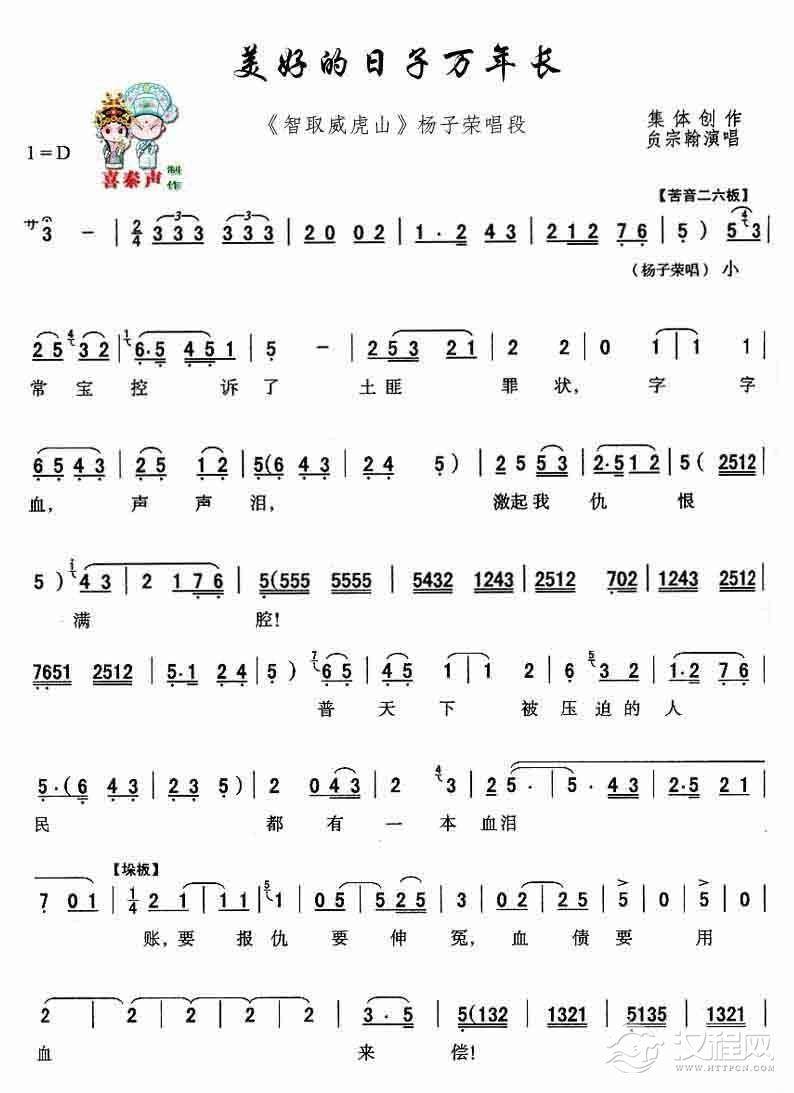 戏曲曲谱[秦腔]借债度日多艰难(秦腔现代艺术片《祝福》主要唱段)