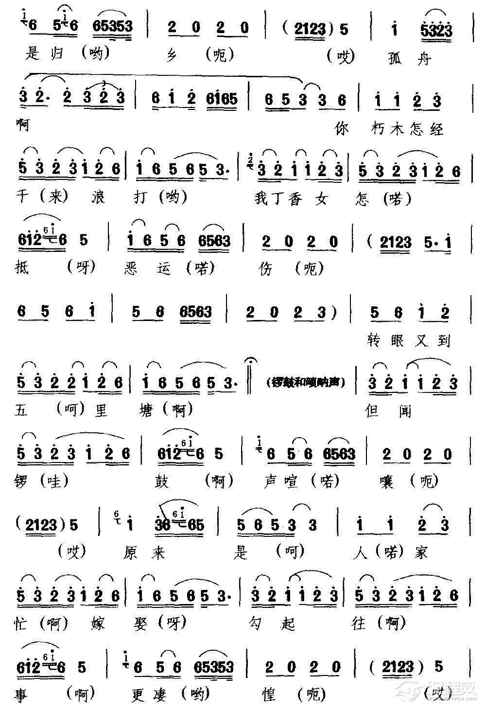 戏曲曲谱[庐剧]含悲忍泪出村庄(《休丁香》选段)