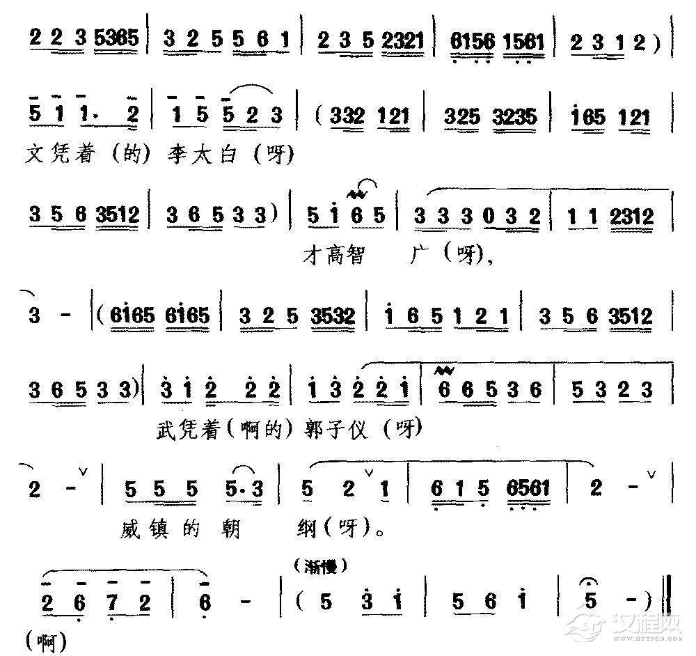 戏曲曲谱[秦腔]厦门亭众百姓喊冤声惨 (《卧虎令》董宣 湖阳公主 唐丹对唱)