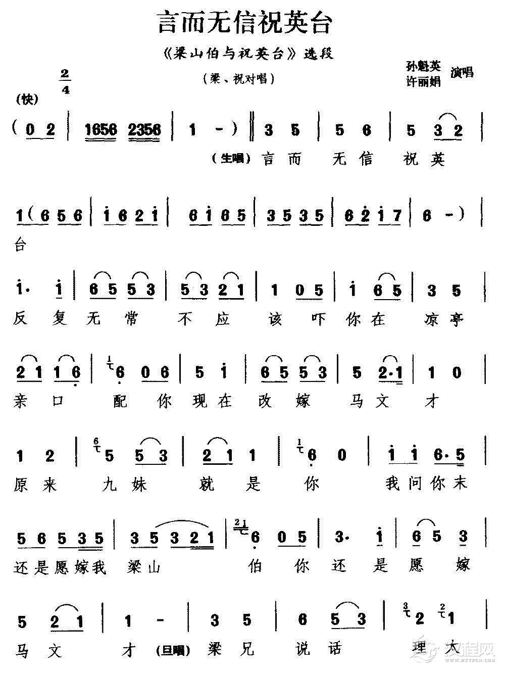 戏曲曲谱[湖剧]那日送你下山来(《梁山伯与祝英台》选段 梁、祝对唱)