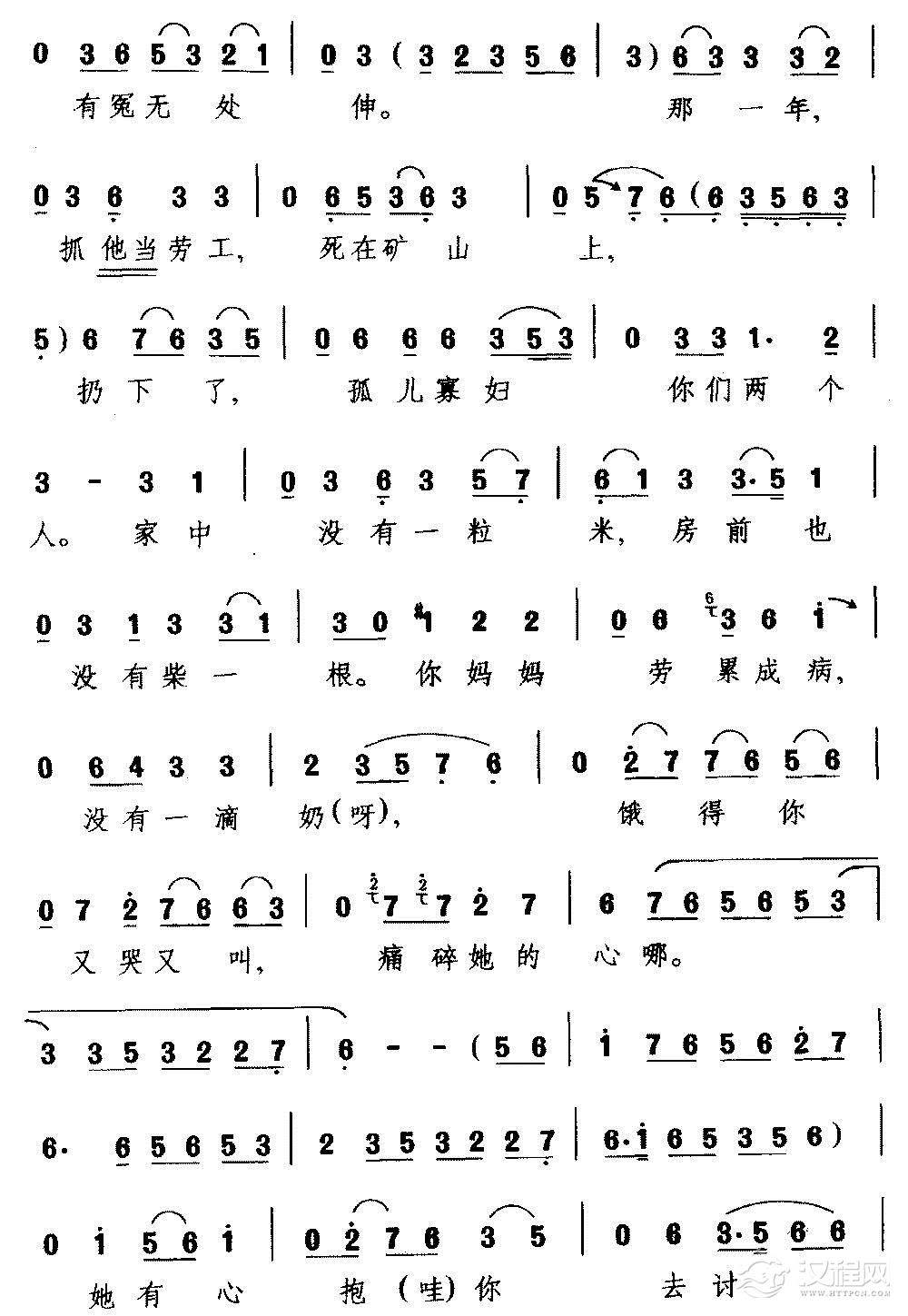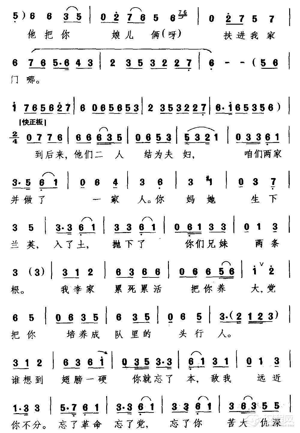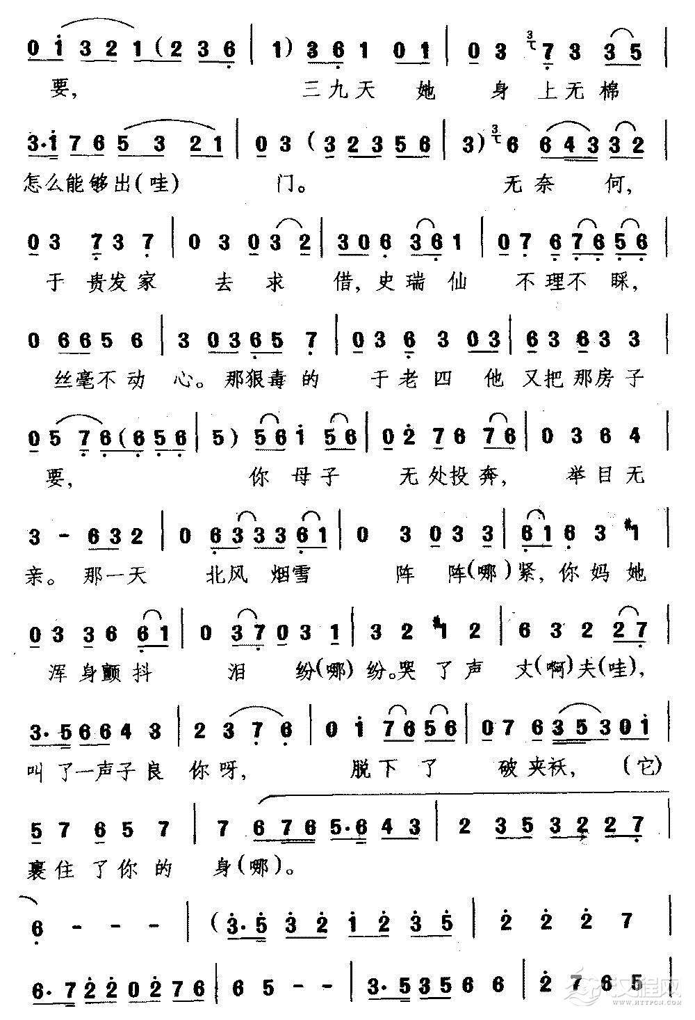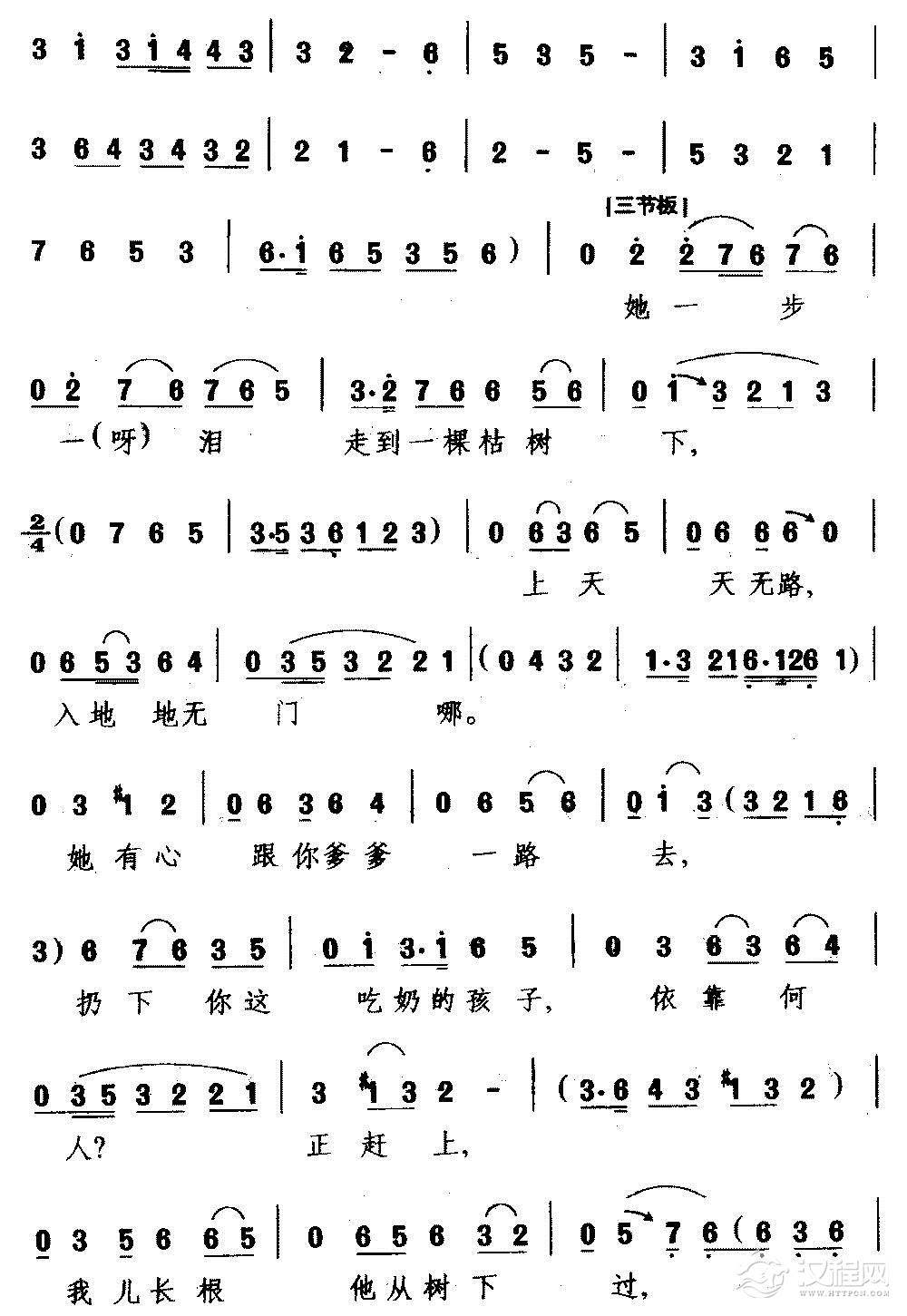 戏曲曲谱[婺剧]身无依膝下无儿媳(《葵花记》选段 旦角唱)