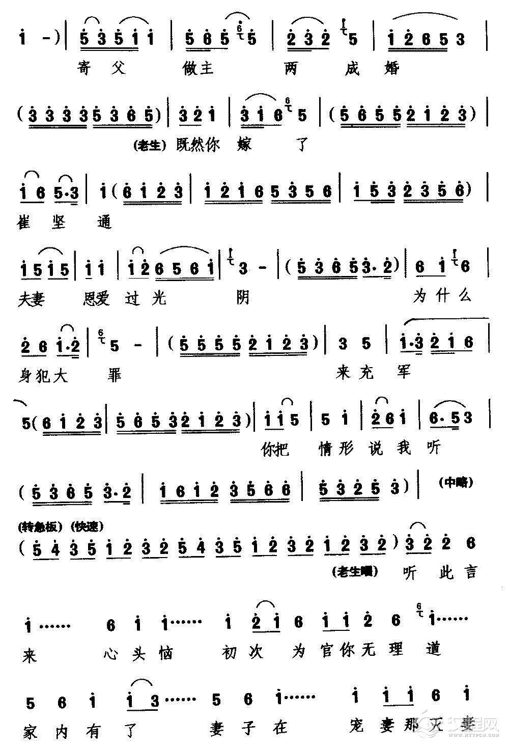 戏曲曲谱[越调]投亲(《火焚绣楼》选段 洪美荣唱)