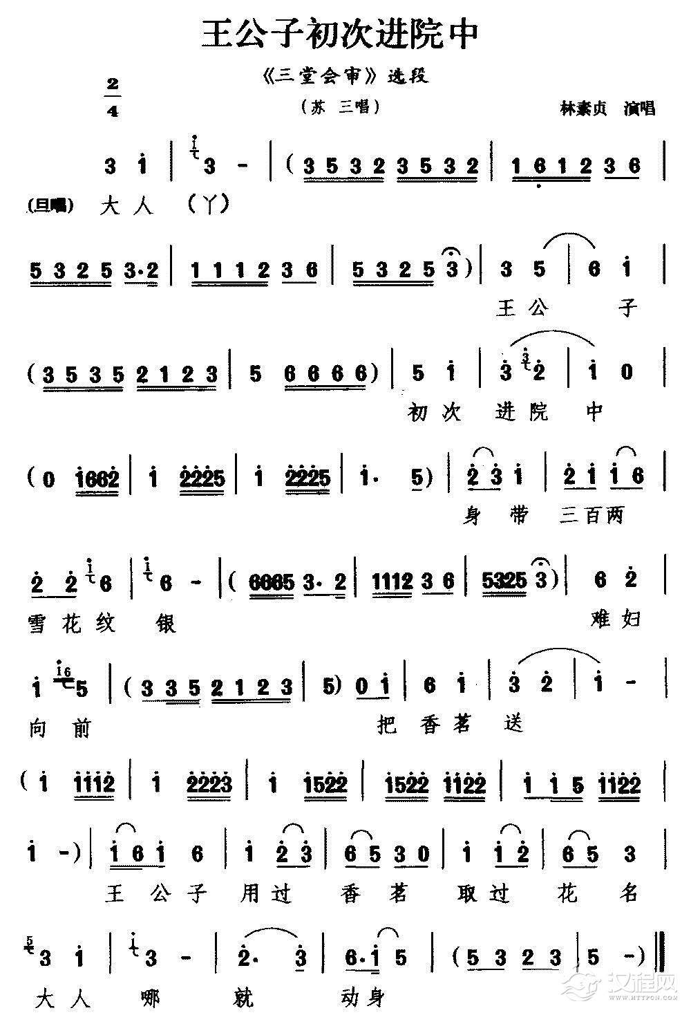 戏曲曲谱[婺剧]玉堂春跪至在都察院(《玉春堂》选段 苏三唱)