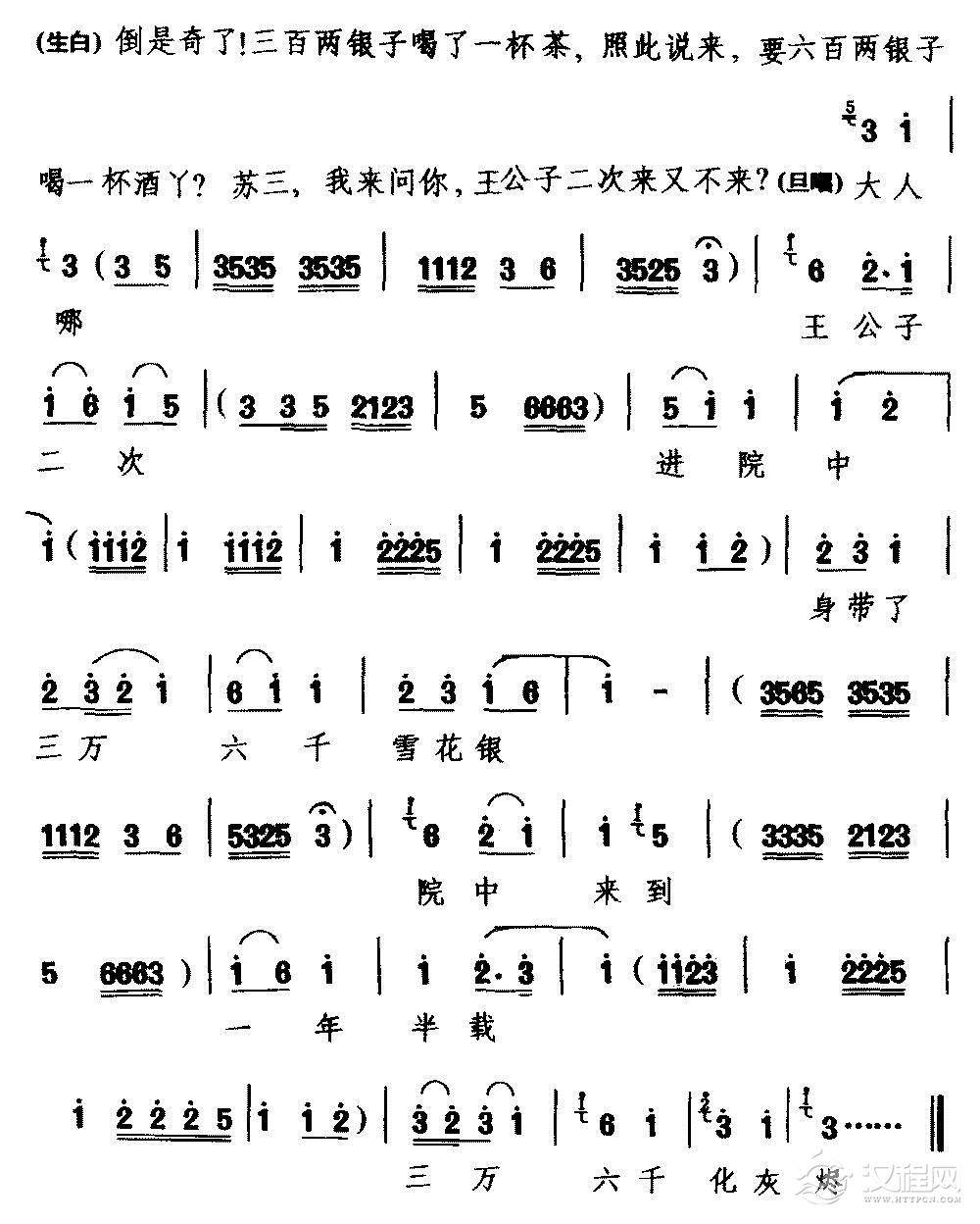 戏曲曲谱[杭剧]听谯楼打初更想起了崔文林(《临江驿》选段 生、旦对唱)