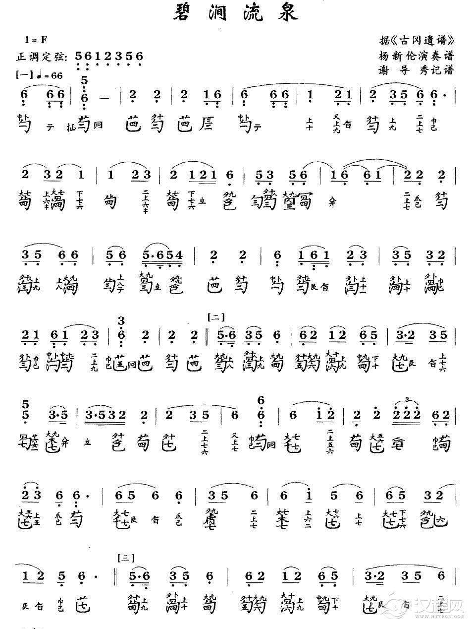 曲谱大全洞庭秋思(古琴谱、简谱+减字谱 )