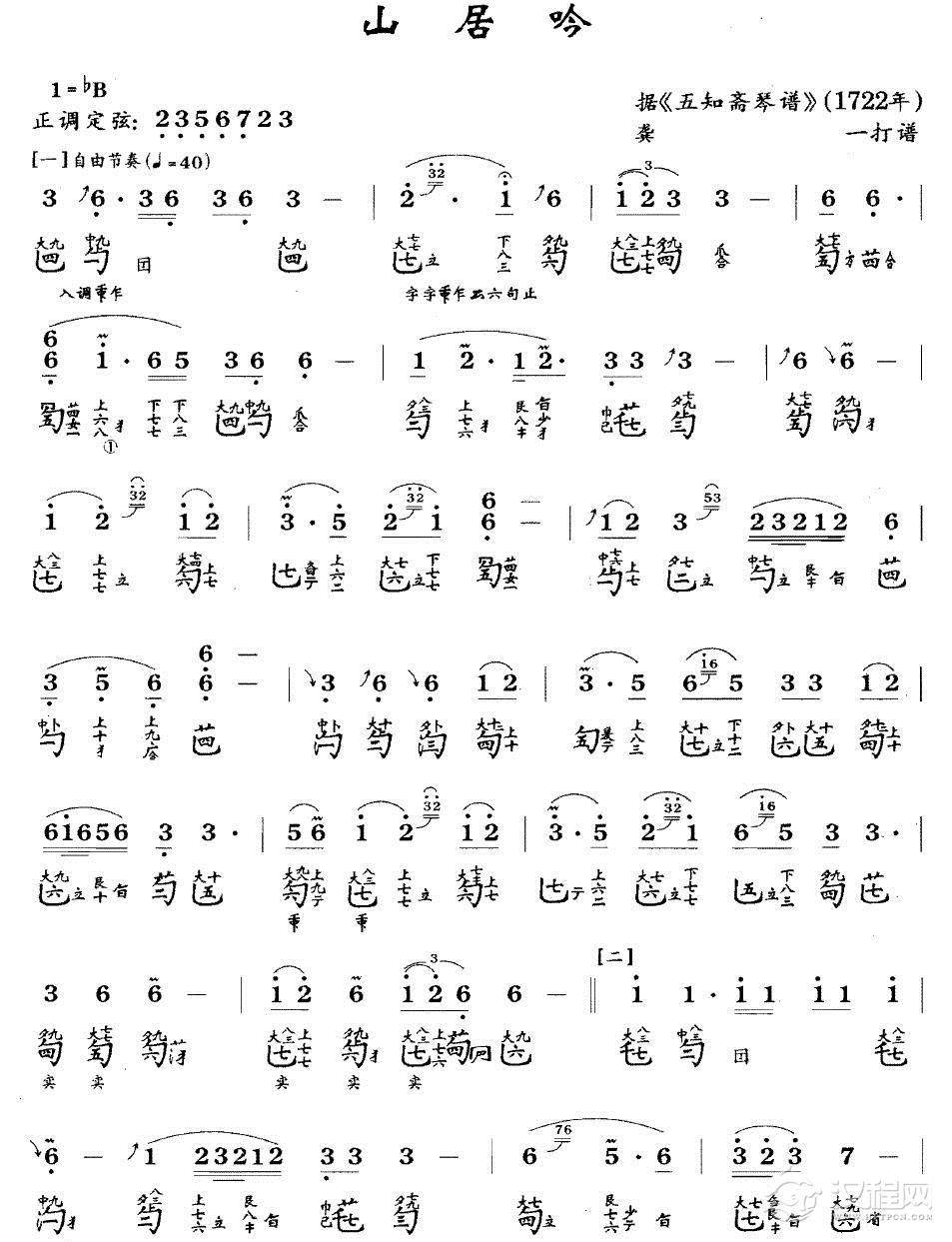 曲谱大全双乙反调(古琴谱、简谱+减字谱)