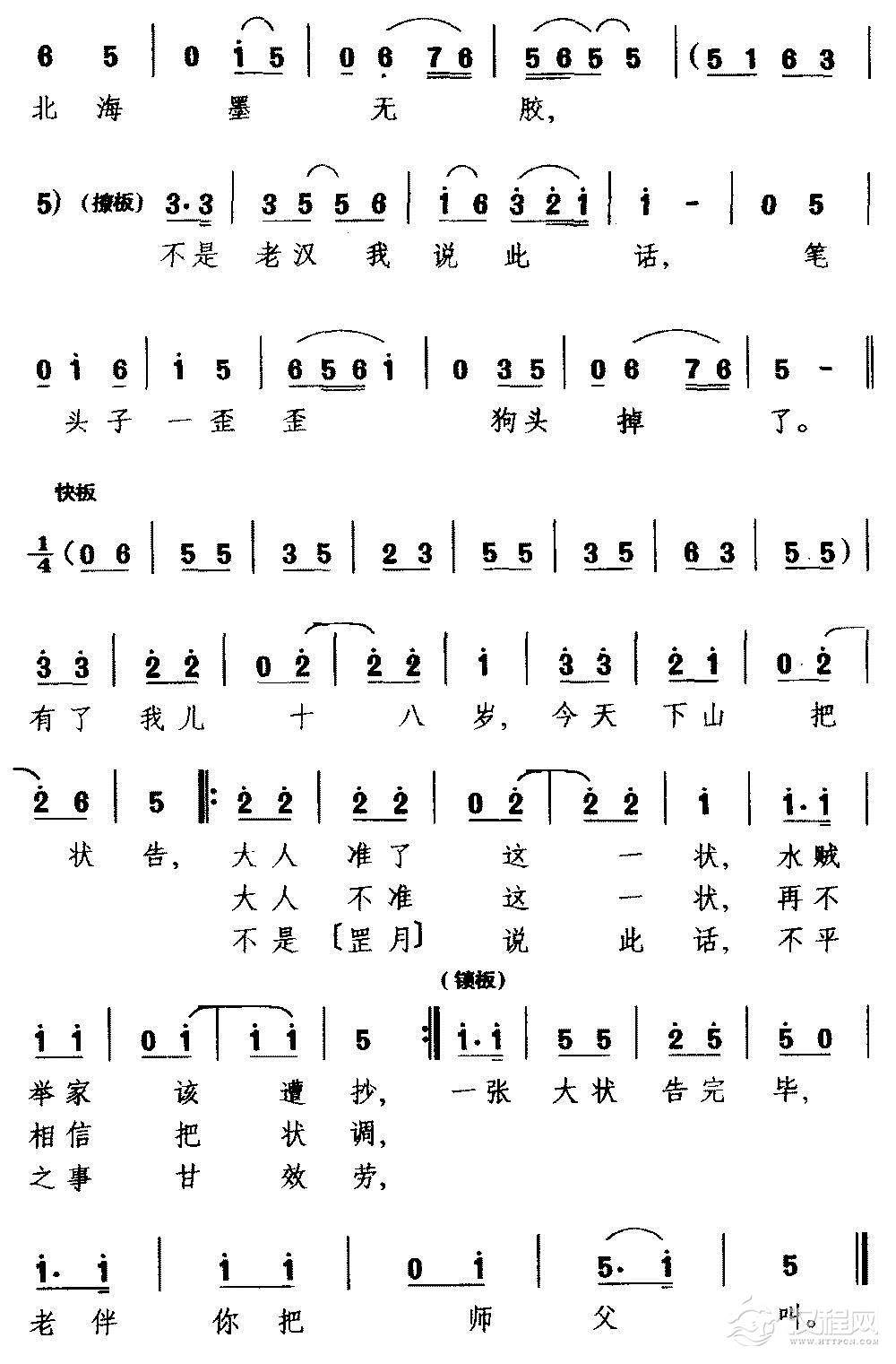 戏曲曲谱[柳腔]大老爷抬出了放告牌(《罗衫记》选段 )