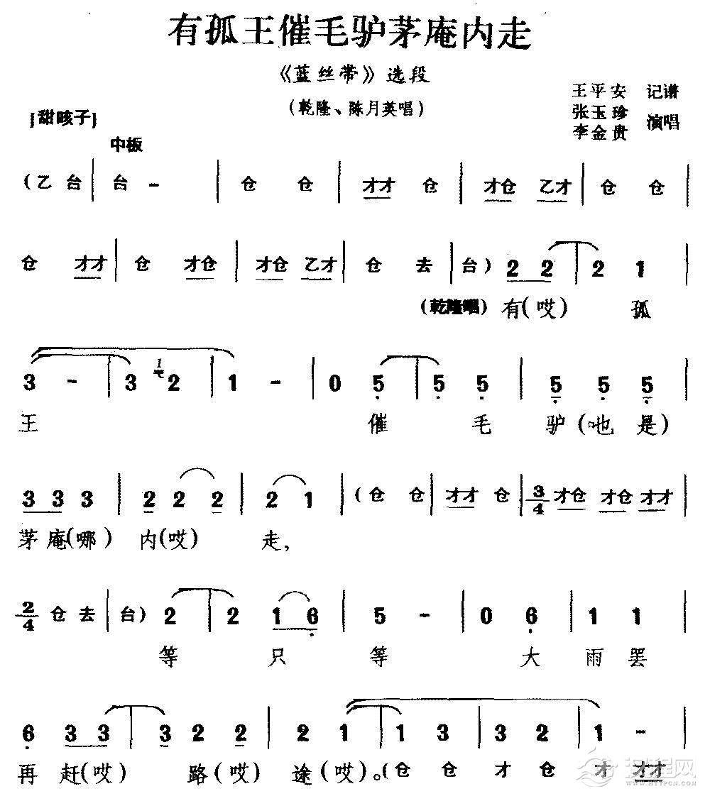 戏曲曲谱[咳子戏]三姐剜菜上了桥(《盘坡》选段 王宝钏唱)