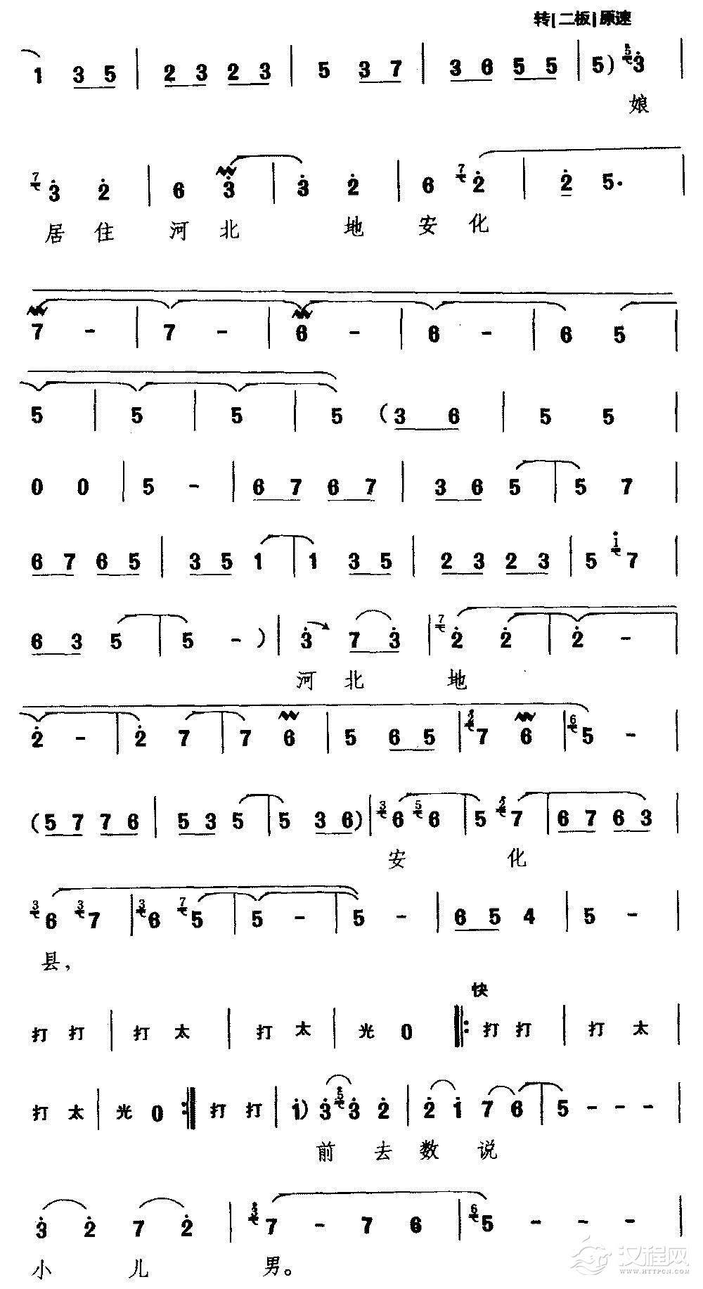 戏曲曲谱[二人台]家住在太原(《走西口》选段 玉莲 太春唱)
