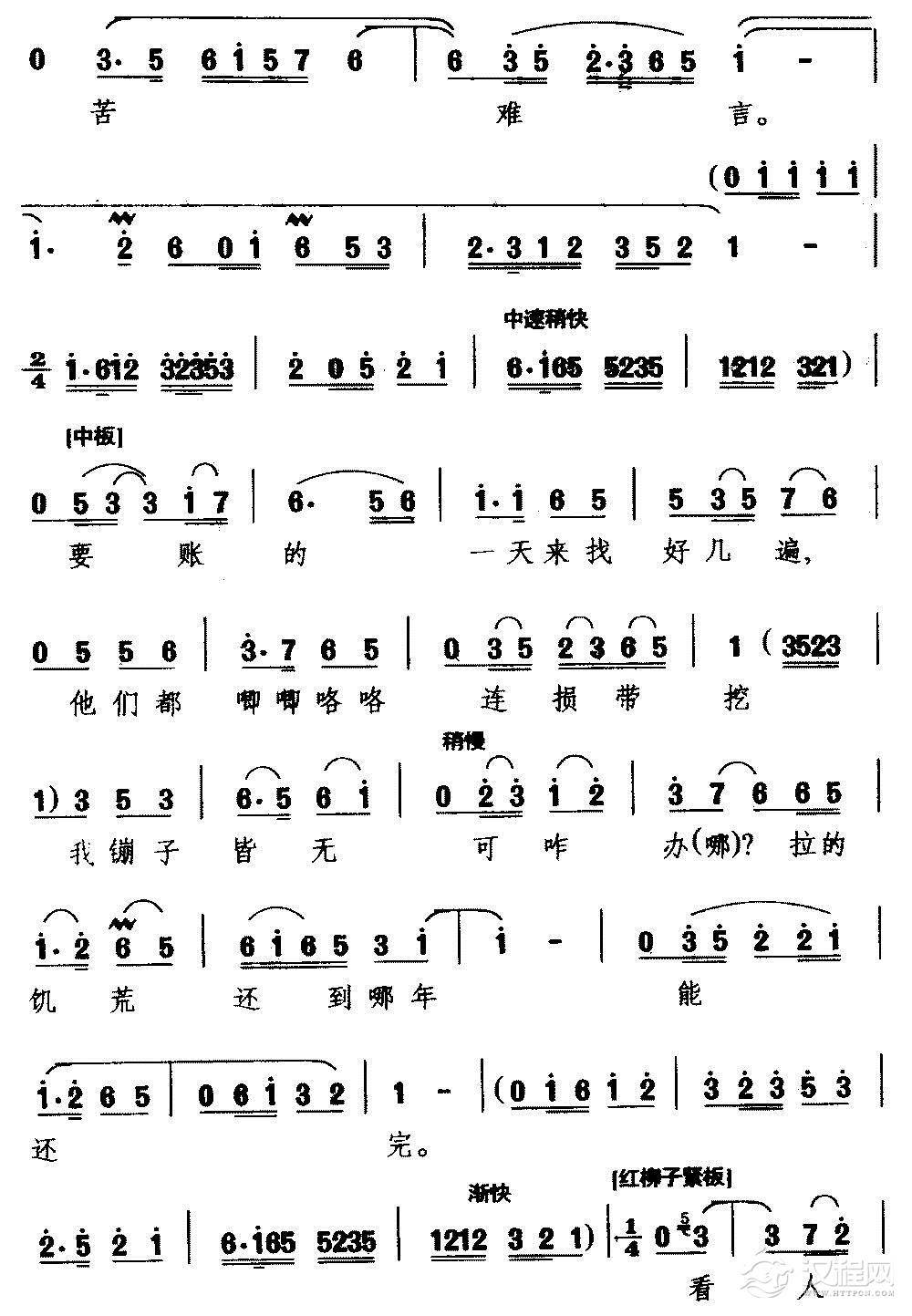戏曲曲谱[北京曲剧]忆苦(《箭杆河边》选段 玉芳唱)
