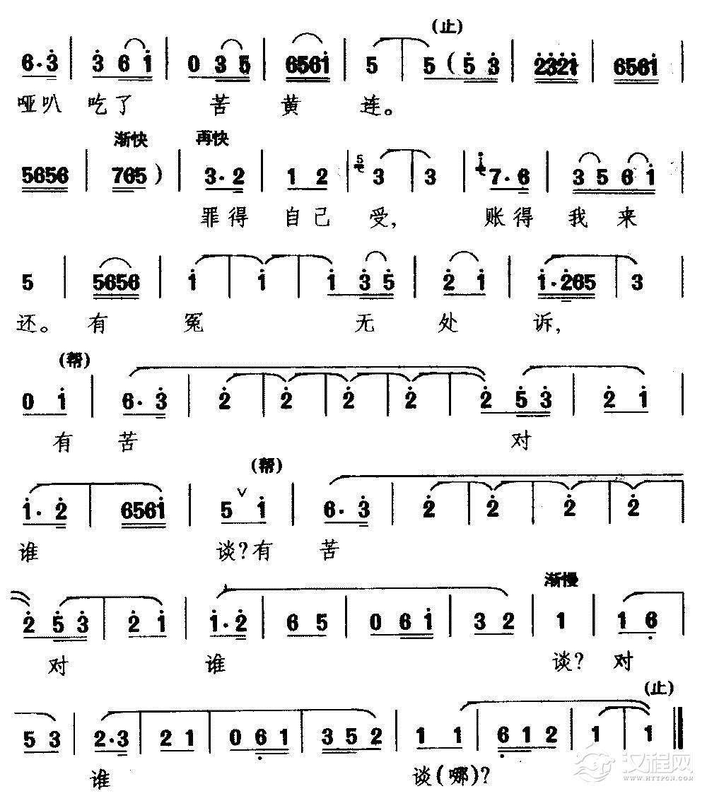 戏曲曲谱[龙江剧]憨郎他滴滴鲜血往下淌(《皇亲国戚》选段 杏花 窦后唱)