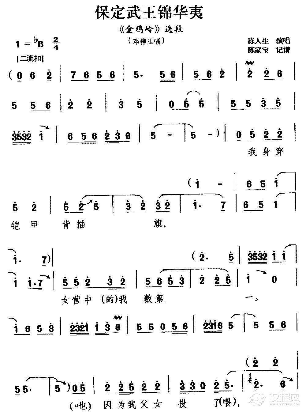 戏曲曲谱[豫南皮影戏]保定周王九龙庭(《金鸡岭》选段 黄天化唱)