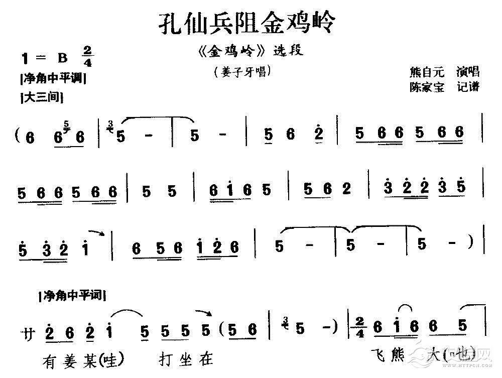 戏曲曲谱[豫南皮影戏]保定周王九龙庭(《金鸡岭》选段 黄天化唱)