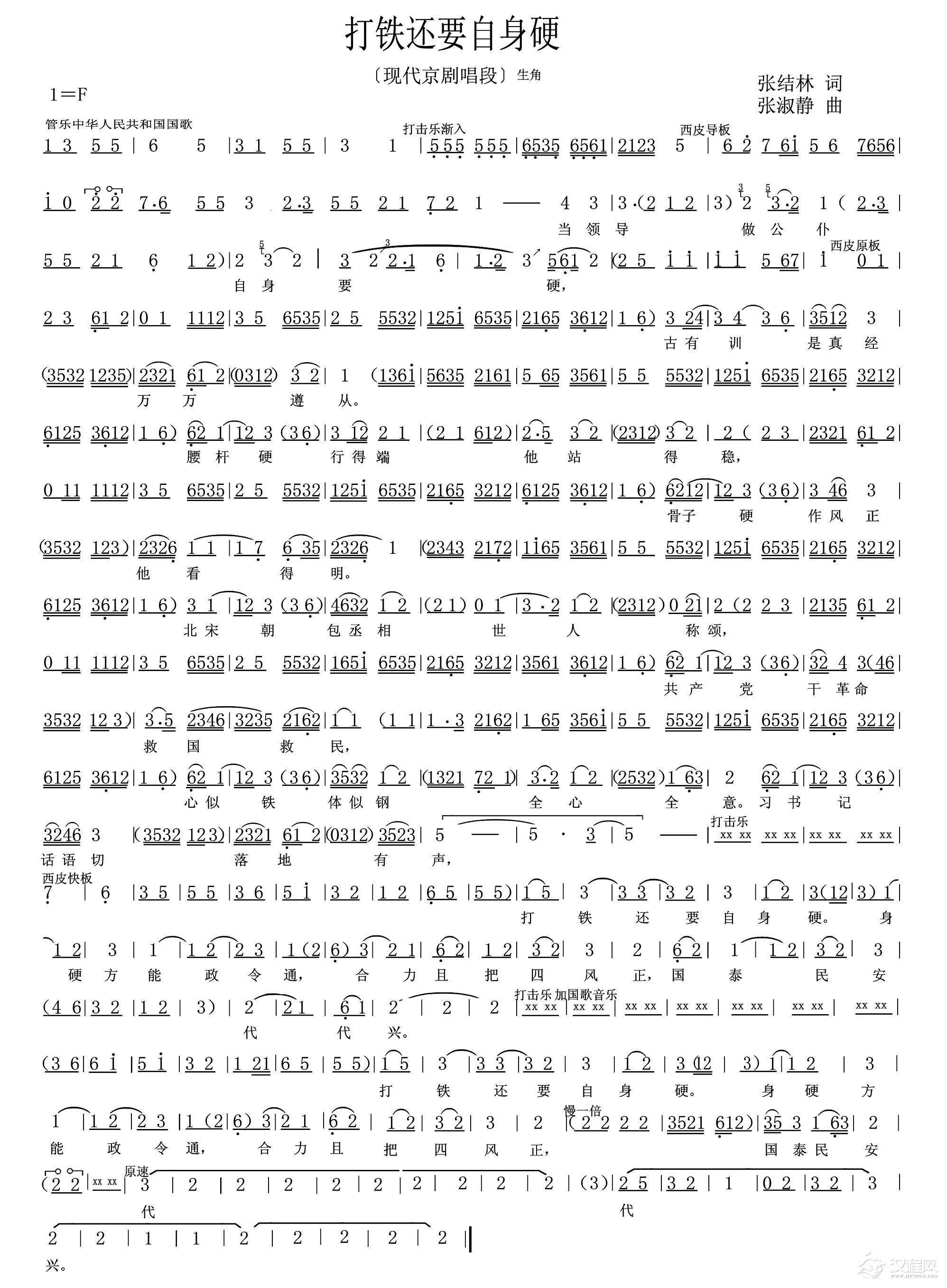 戏曲曲谱中华好儿郎(现代京剧唱段)