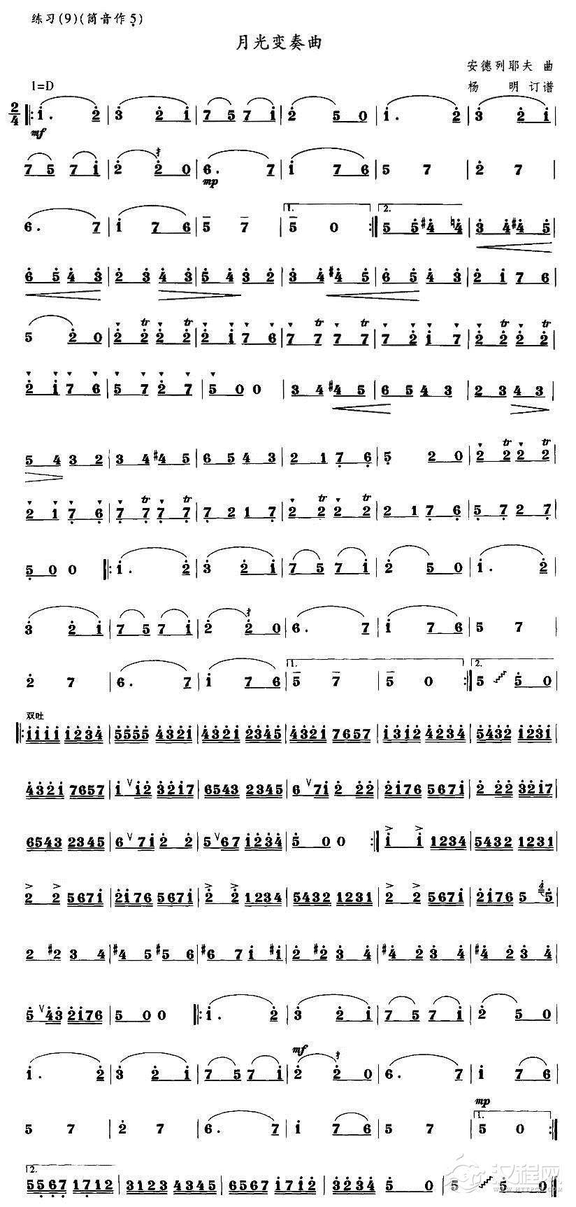 沂蒙山歌(笛子独奏+乐队伴奏扬琴分谱)