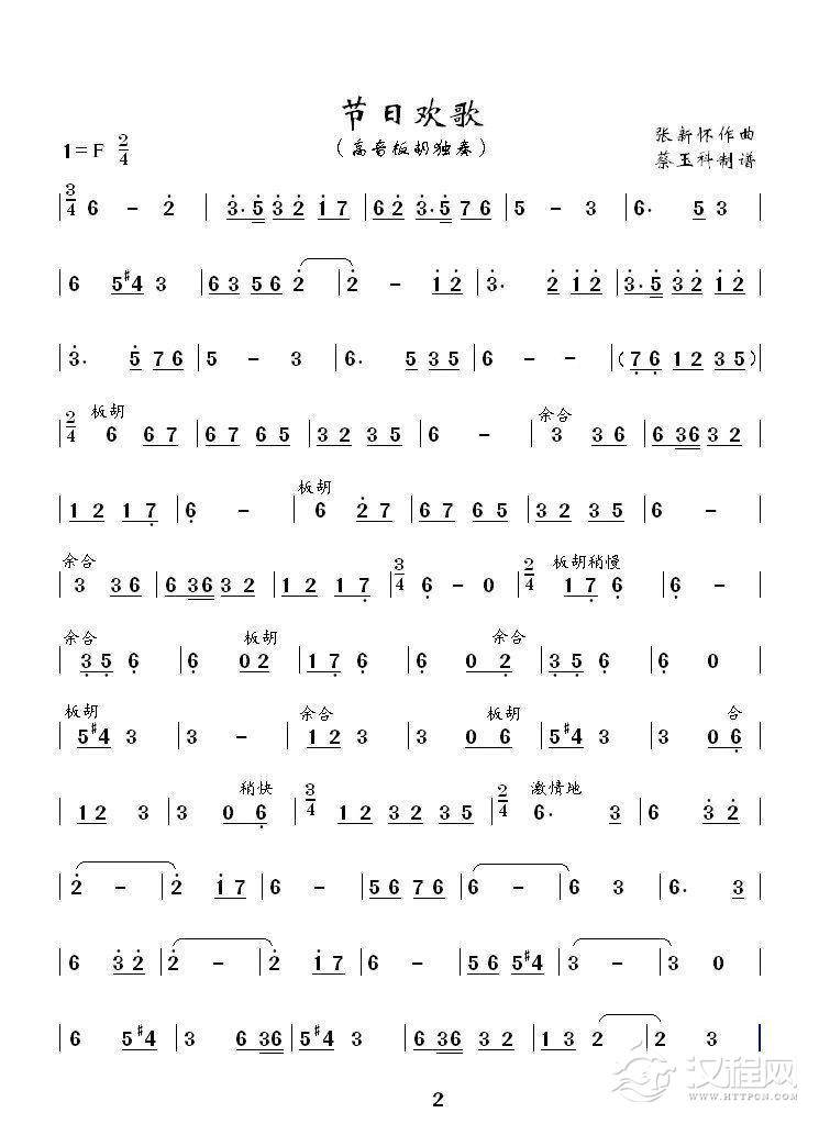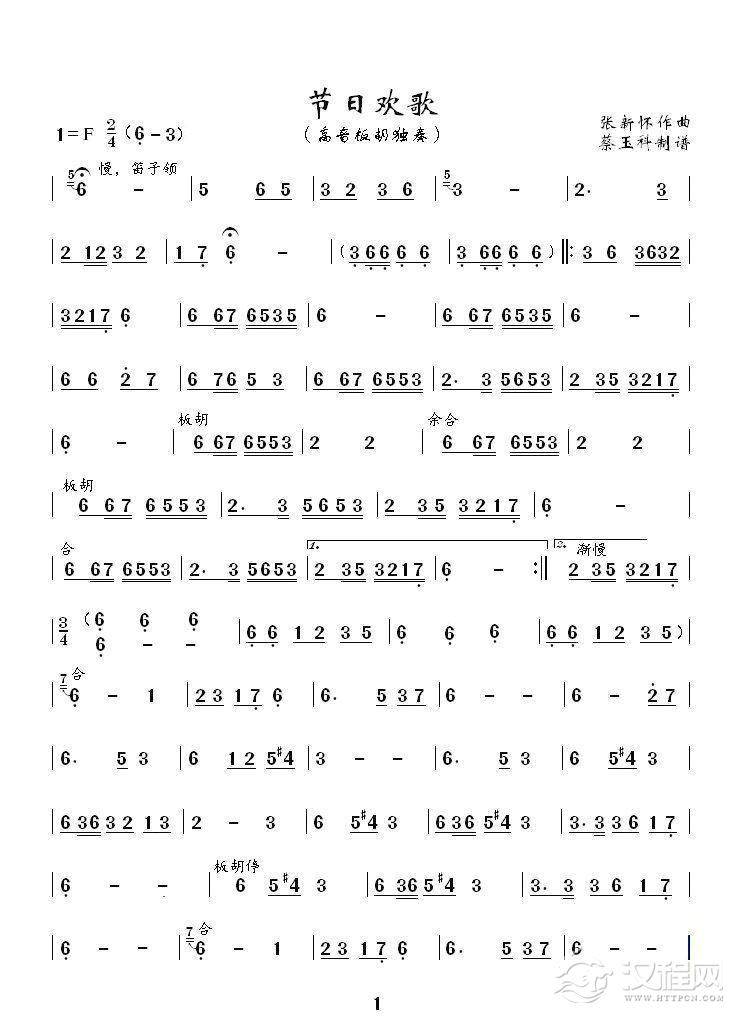曲谱大全春暖花开时(高音板胡独奏曲)