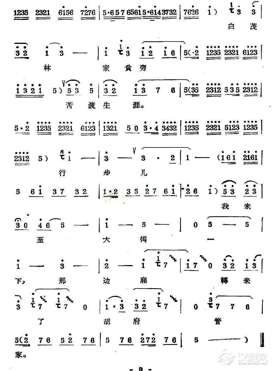戏曲曲谱[庐剧]观罢了西墙把南墙观看(《秦雪梅观画》选段 雪梅唱)
