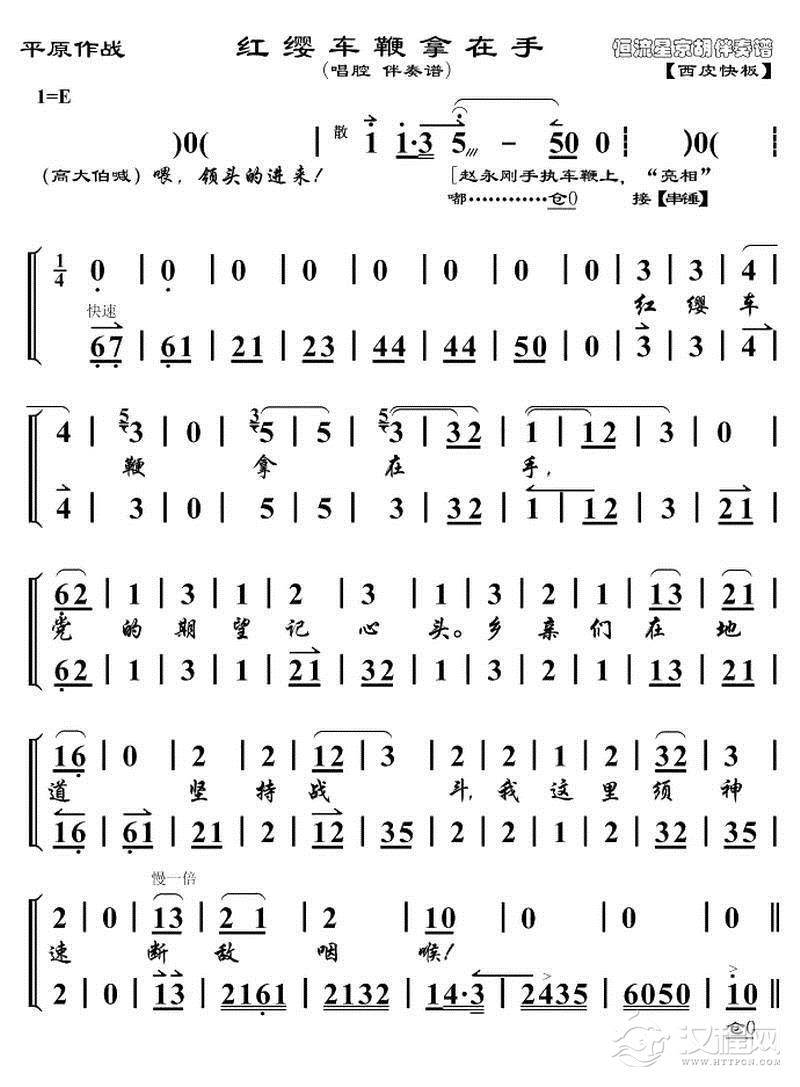 戏曲曲谱祖国的好山河寸土不让(《沙家浜》郭建光唱段、二胡考级谱)