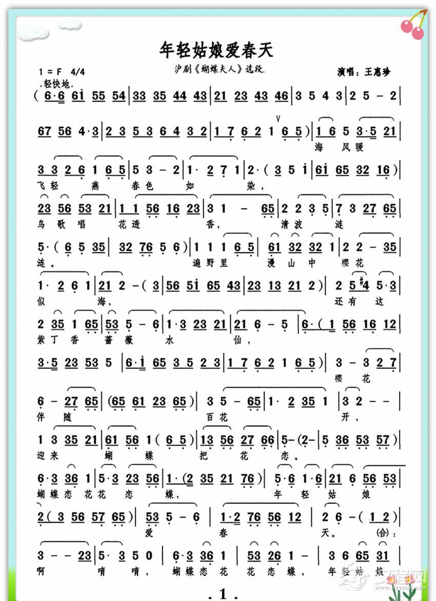 戏曲曲谱年轻姑娘爱春天2