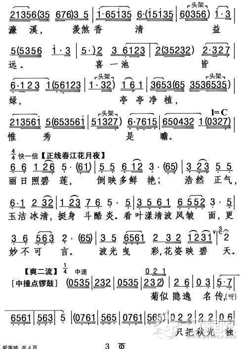 戏曲曲谱[敦煌曲子戏] 平采花(《老换少》老丑唱段)