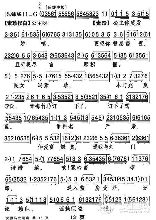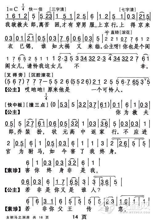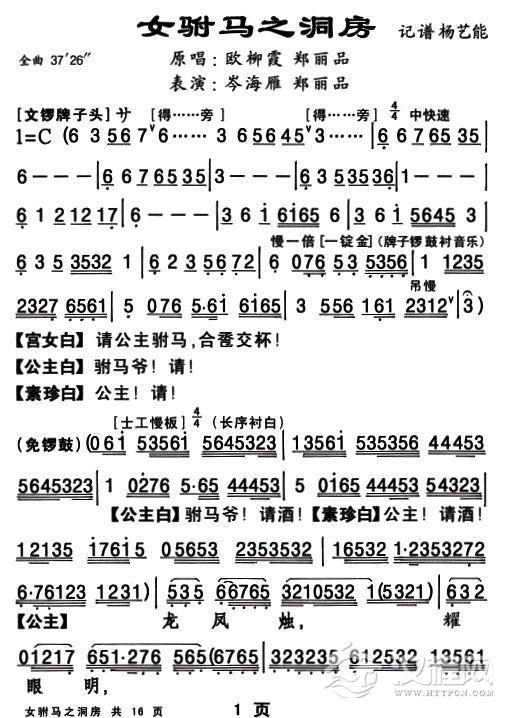 戏曲曲谱[敦煌曲子戏] 平采花(《老换少》老丑唱段)