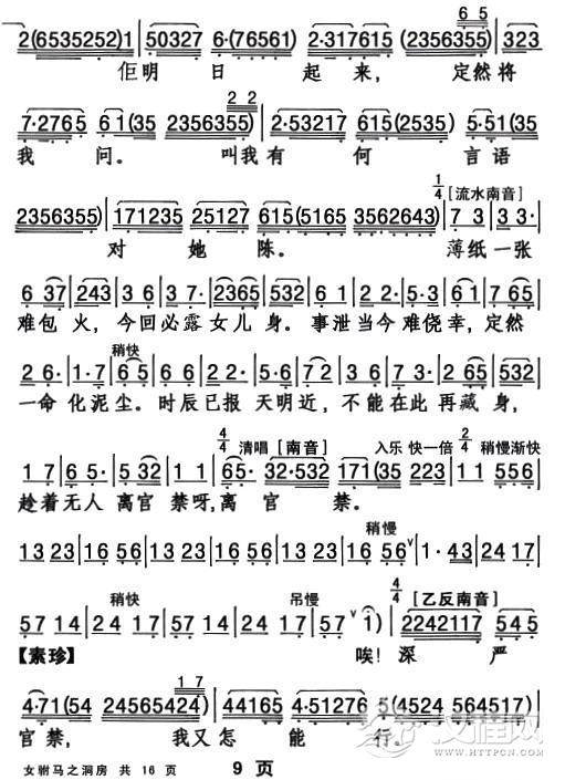戏曲曲谱[敦煌曲子戏] 长城调(《老换少》小旦唱段)