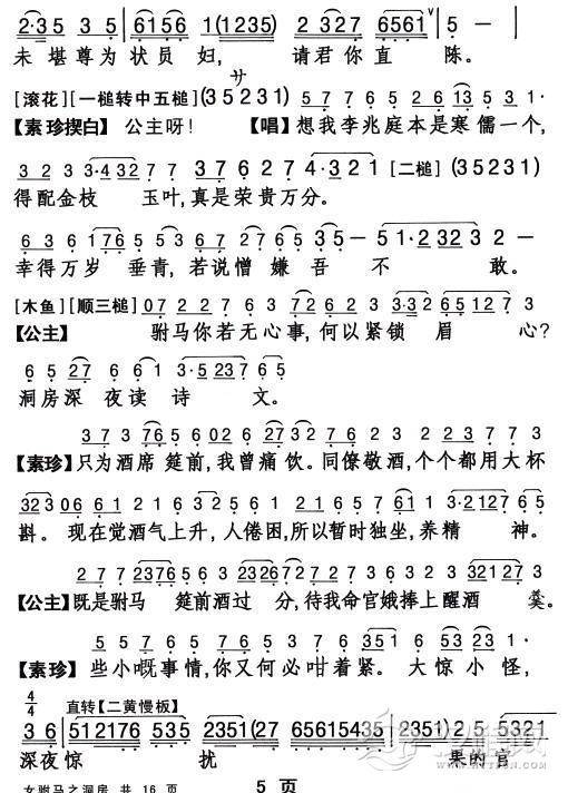 戏曲曲谱[敦煌曲子戏] 平五更(《老换少》小生唱段)