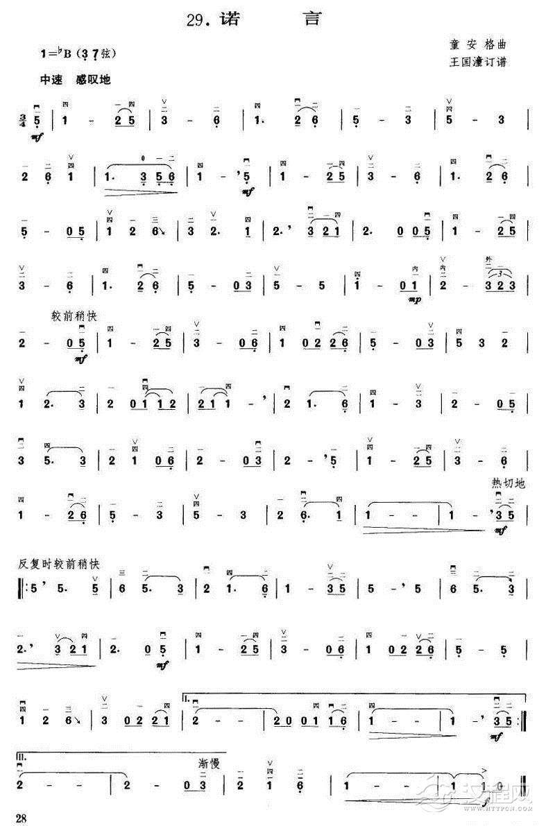 曲谱大全风雪筑路(古琴谱 F调 简谱+减字谱)
