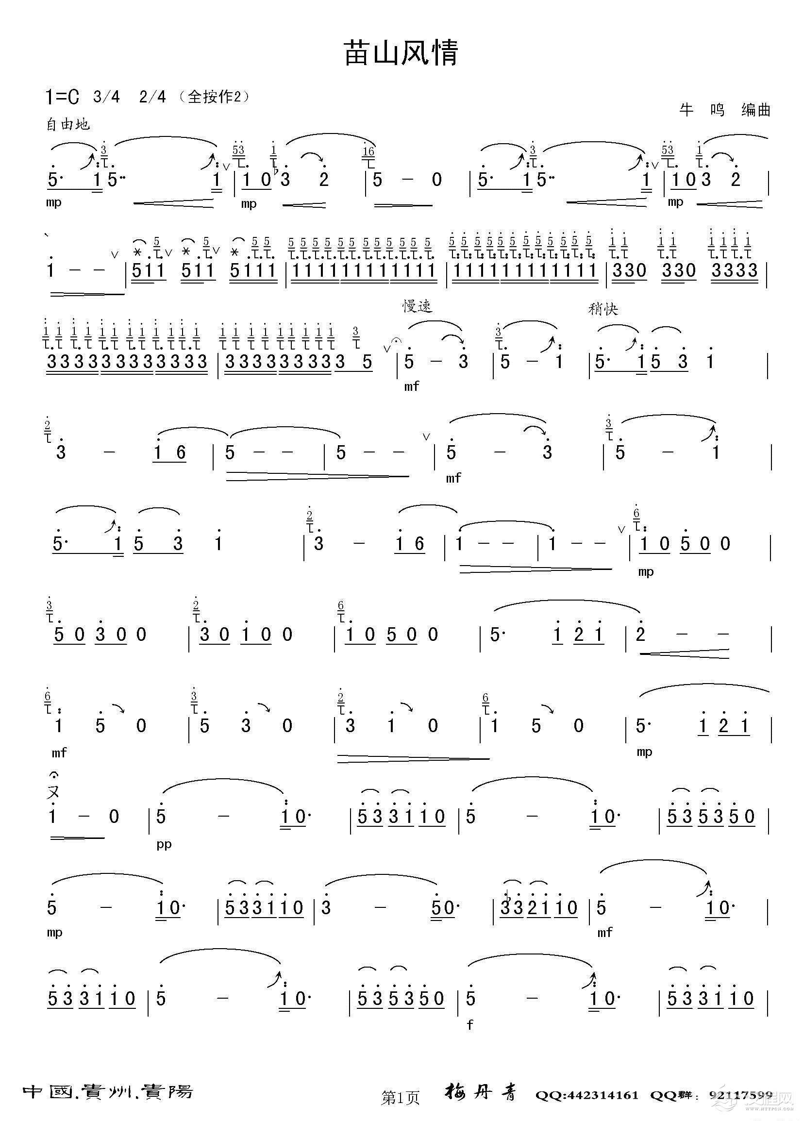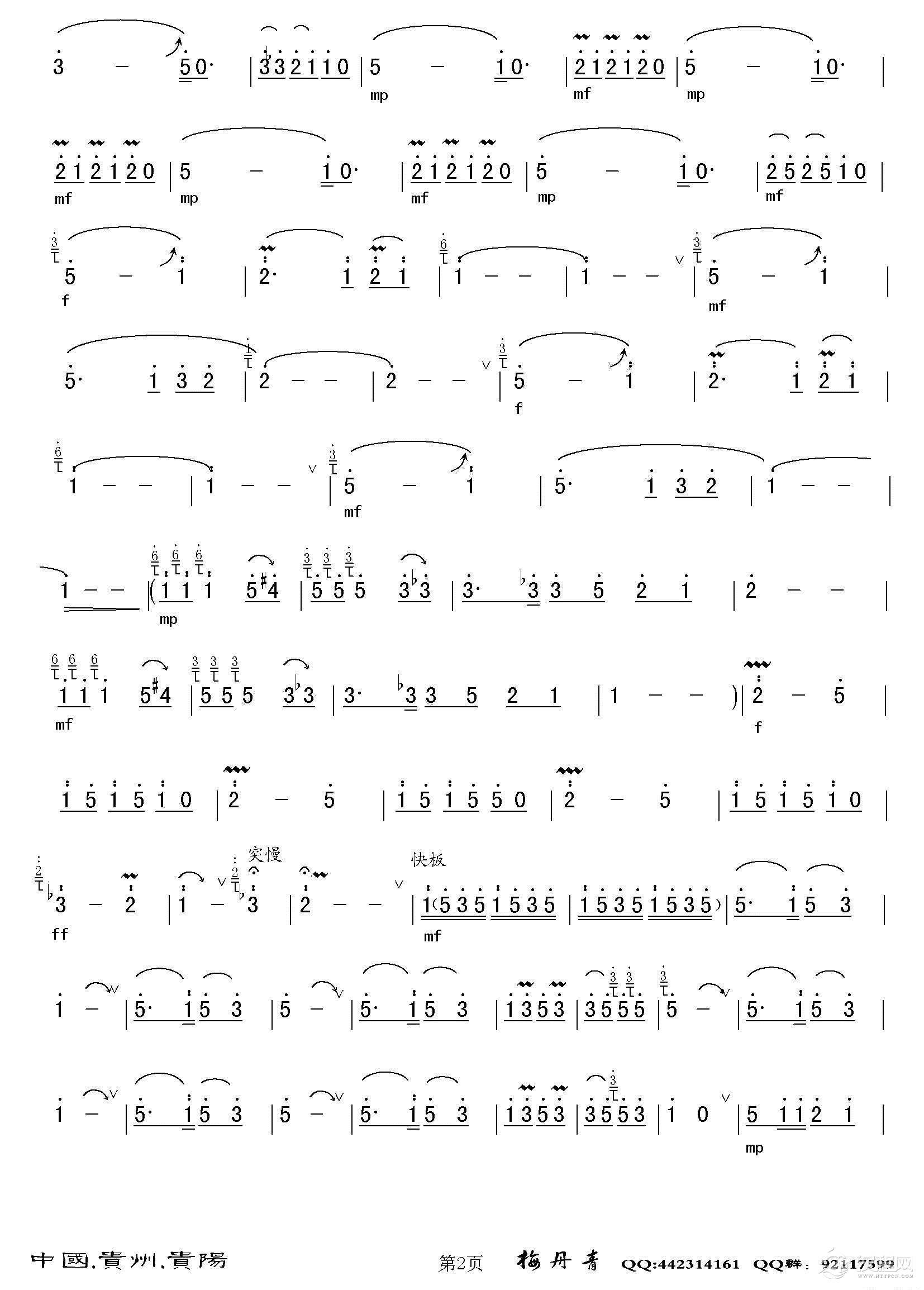 五哥放羊(二胡分谱)