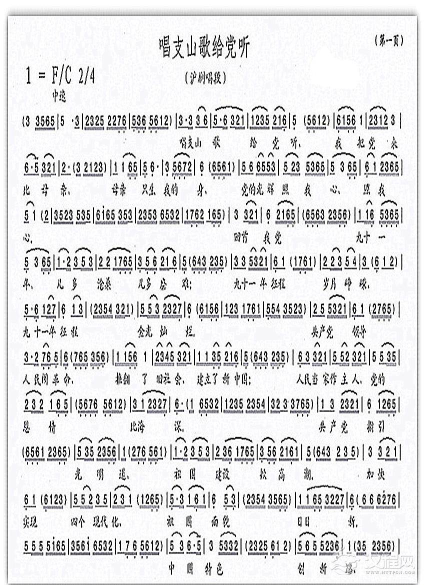 戏曲曲谱沪剧唱段:唱支山歌给党听2
