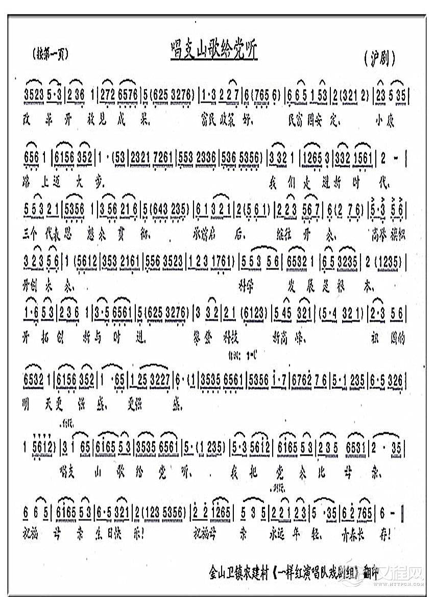 戏曲曲谱沪剧唱段:唱支山歌给党听1