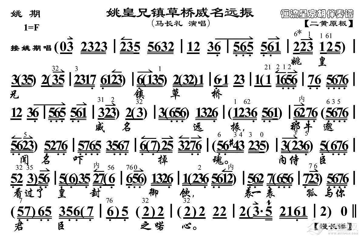 戏曲曲谱马杜岑奉王命把草桥来镇(《姚期》选段、琴谱)